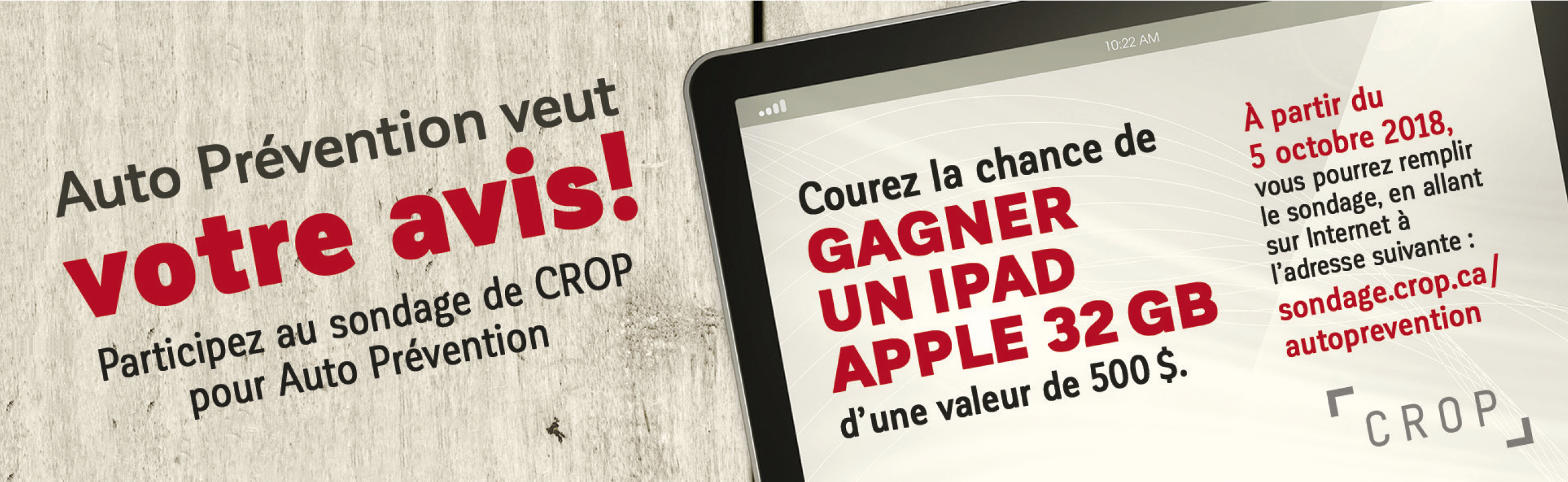 Afin de participer au sondage CROP d’AutoPrévention, il suffit de :