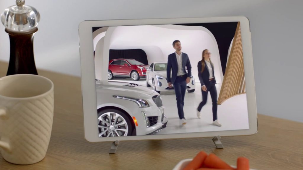 À la mi-mars, Cadillac Canada lançait en première nord-américaine son programme Cadillac Live (en français : Cadillac en Ligne). Le concept, une idée de l’agence Isobar, est unique : rassembler les véhicules de la marque dans une salle d’exposition virtuelle (en l’occurrence, un studio de cinéma de 930 mètres carrés dont l’emplacement à Toronto est intentionnellement gardé secret); ajouter quelques spécialistes de produits sur le plancher de ce showroom technologique et les munir d’équipements audiovisuels de pointe comme un iPhone X, un casque Bluetooth et un support DJI Osmo Mobile.