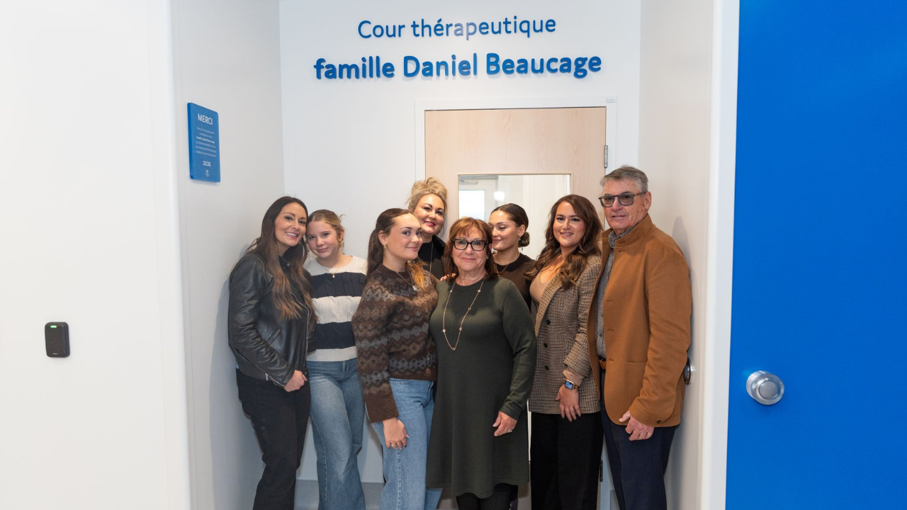 La «cour thérapeutique famille Daniel Beaucage» est intégrée au nouveau Pavillon Enfant Soleil et Urgence de l’Hôpital Fleurimont. « Nous croyons profondément qu’investir dans la santé mentale de nos jeunes, c’est investir dans l’avenir de toute notre communauté», ont exprimé les membres de la famille Beaucage.