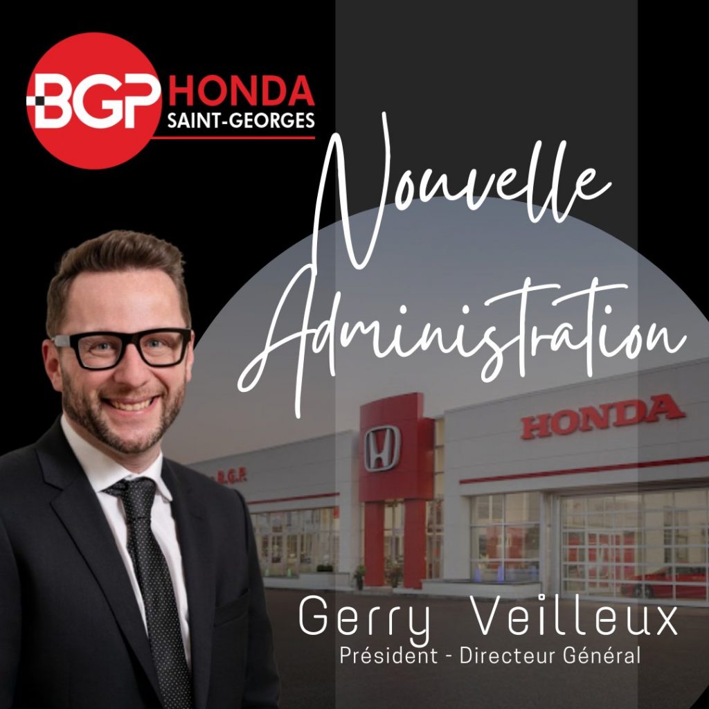 Depuis le 31 mars dernier, la BGP Honda Saint-Georges est passée sous une nouvelle administration, avec à sa tête M. Gerry Veilleux, désormais président-directeur général. La direction, qui a annoncé la nouvelle sur les réseaux sociaux, affirme vouloir préserver les valeurs qui ont façonné sa réputation, tout en renforçant ses processus internes pour mieux répondre aux besoins des clients.