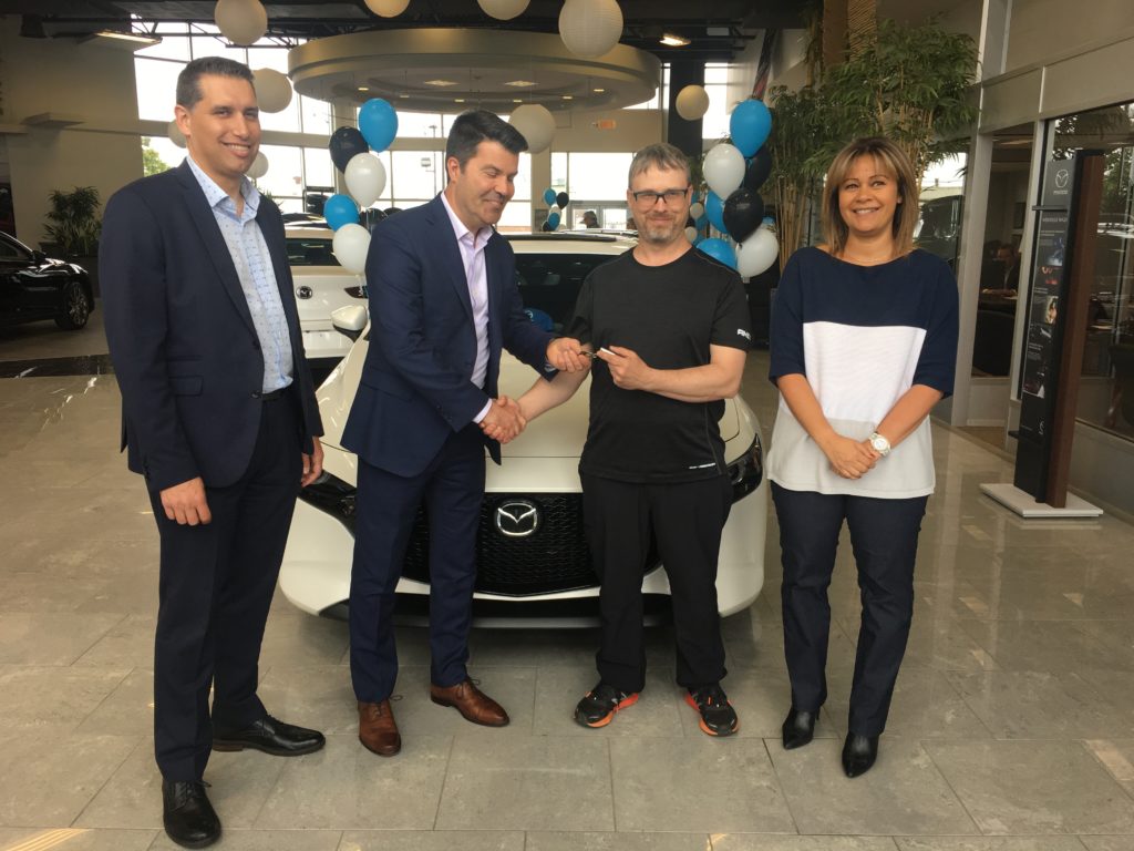 Le 11 juin dernier, André Grenier s’est vu remettre les clés d’une Mazda3 AWD 2019 à la concession Mazda Laurier de Québec. M. Grenier a gagné le concours organisé lors du 38e Salon international de l’auto de Québec (SIAQ), qui s’est tenu en mars dernier.