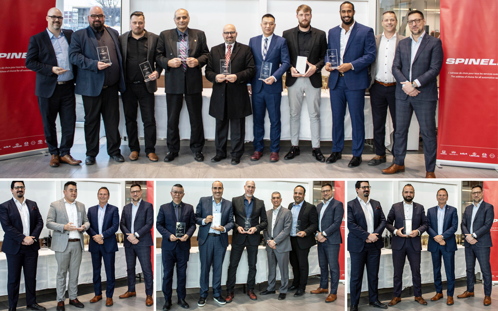 Le 8 février dernier était une journée de célébration chez Spinelli. Le groupe montréalais, qui réunit une dizaine de concessions dans les municipalités de l’ouest de l’île de Montréal, a honoré plus d’une quinzaine de conseillers experts en leur décernant des trophées dans le cadre d’un programme de reconnaissance. Les résipiendaires de ces reconnaissances sont : Antoine Rodrigues, William Deschênes, Marcello Schembre, Alexander Fort, Chuan Lê, Felix Lee, Duncan Liu, Robert Azoulay, Patrick Lussier, Raza Gheewala, Jonathan Raymond, Robert Wojcik, Rafik Danyal Youssef, Edward Moufarrej, Jason Zhao, Kirill Varenik et Ahmed Hassan. « Leur engagement envers l’excellence et leur dévouement envers notre clientèle fidèle sont une source d’inspiration pour nous tous », a écrit la direction du groupe dans les réseaux sociaux. « Ces conseillers experts incarnent la passion et le savoir-faire qui font toute la différence dans le monde de l’automobile. » La remise de ces trophées a eu lieu en présence, notamment, de Mathieu Spinelli, vice-président exécutif de Spinelli.