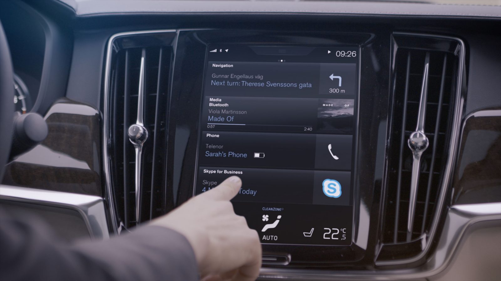 Le conducteur pourra, par exemple, visionner les réunions auxquelles il doit assister, visionner les détails sur chaque participant et rejoindre d’autres réunions, le tout par le biais de l’écran tactile du système d’infodivertissement Volvo.